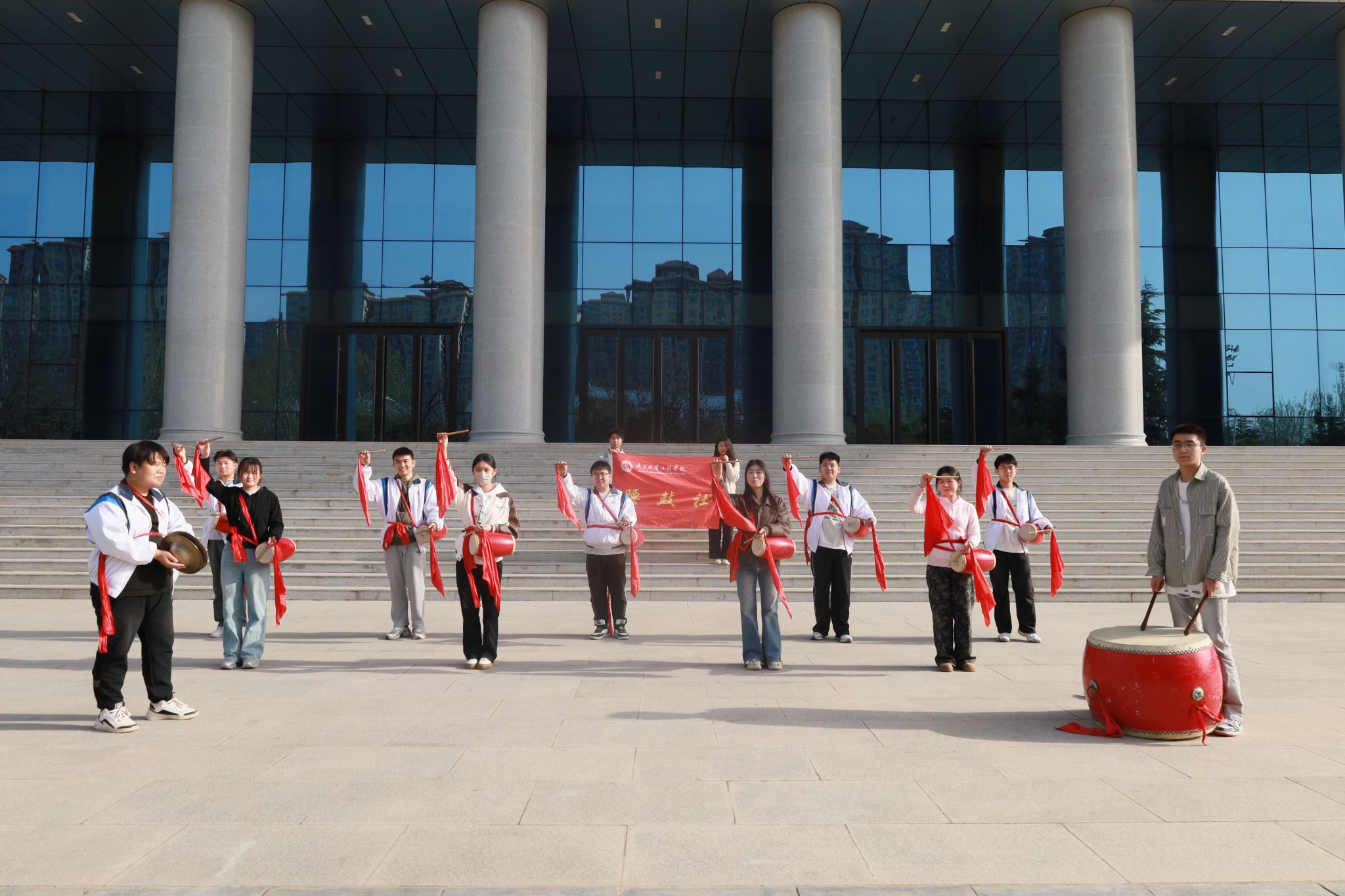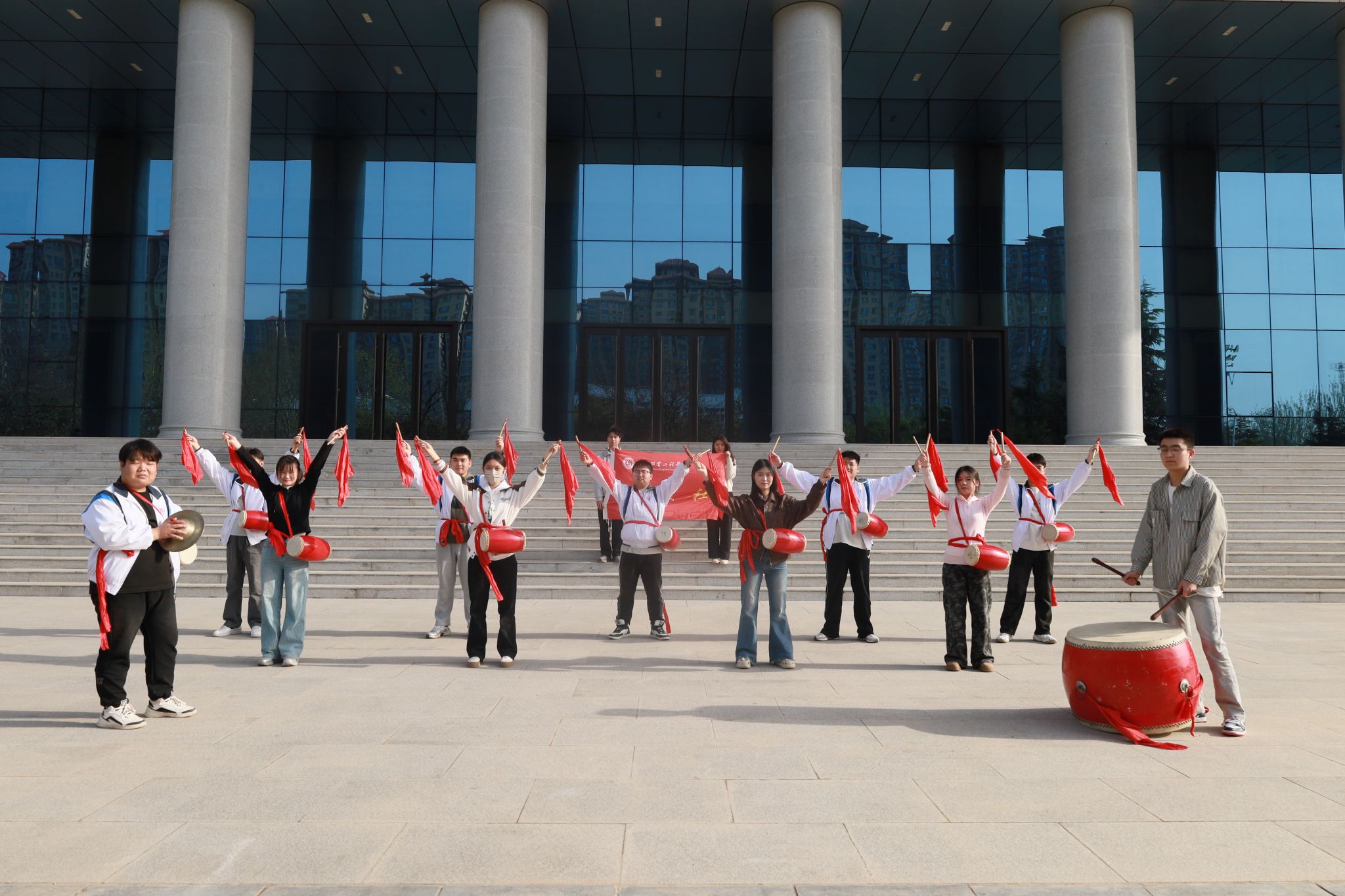 腰鼓这门艺术以其深厚的群众基础和浓郁民族特色深受广大同学的喜爱。参与腰鼓训练,让学生找到了自信心和展示的舞台。腰鼓活动,不仅能给学生提供生动有趣、丰富多彩的内容,让学生开放自我与沟通他人,用艺术的方式表达和交流情感,尽情、自由地参与,体验成长的快乐和满足,获得身心的和谐发展,而且也给学生一个充分展示其艺术才华的舞台;在腰鼓活动里,学生的协调性、创造力得到了充分的肯定,并培养了其展现自我的自信心,获得初步的成功感,并将这种感觉带到学习、生活中来,使其有了质的进步。
