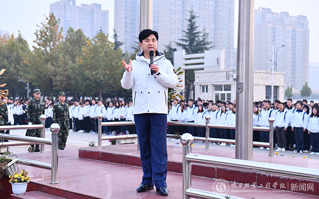 陕服新闻网讯(宣传部魏怀菊)11月4日,我校在东门口喷泉广场举行11月升国旗仪式,董事长吕明,校长张义明,校党委书记胡鸿晓,副校长吕超、李宗领,工会主席刘明夫,校长助理张斌崇、吴俊林、罗文谦,校级领导吕云云等出席,全校教职工及全校师生10000余人参加。胡鸿晓主持。