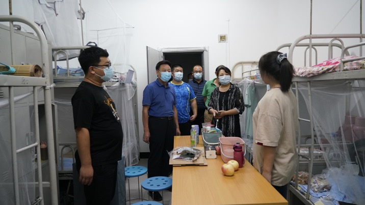 晚上7:00,校长张义明、党委书记温锋、常务副校长李望国、副校长吴俊林、李宗领、温小郑、唐明晰带领党政办、学生处、招生办等职能部门负责人、各二级学院院长、2020级本科辅导员深入宿舍楼看望新生。校领导首先向新生表示祝贺,祝贺他们成为光荣的大学生,然后详细询问学生的饮食、起居问题,叮嘱他们做好疫情防控工作,做好个人防护,希望大家尽快调整心态,尽快融入陕服大家庭,尽快适应大学生活,刻苦学习,不负青春,学到一身本领为祖国建设做贡献。校领导还叮嘱辅导员和宿管要像关心自己的亲人和孩子一样关心新同学,解决他们的实际困难,为他们创造一个舒心的生活环境。