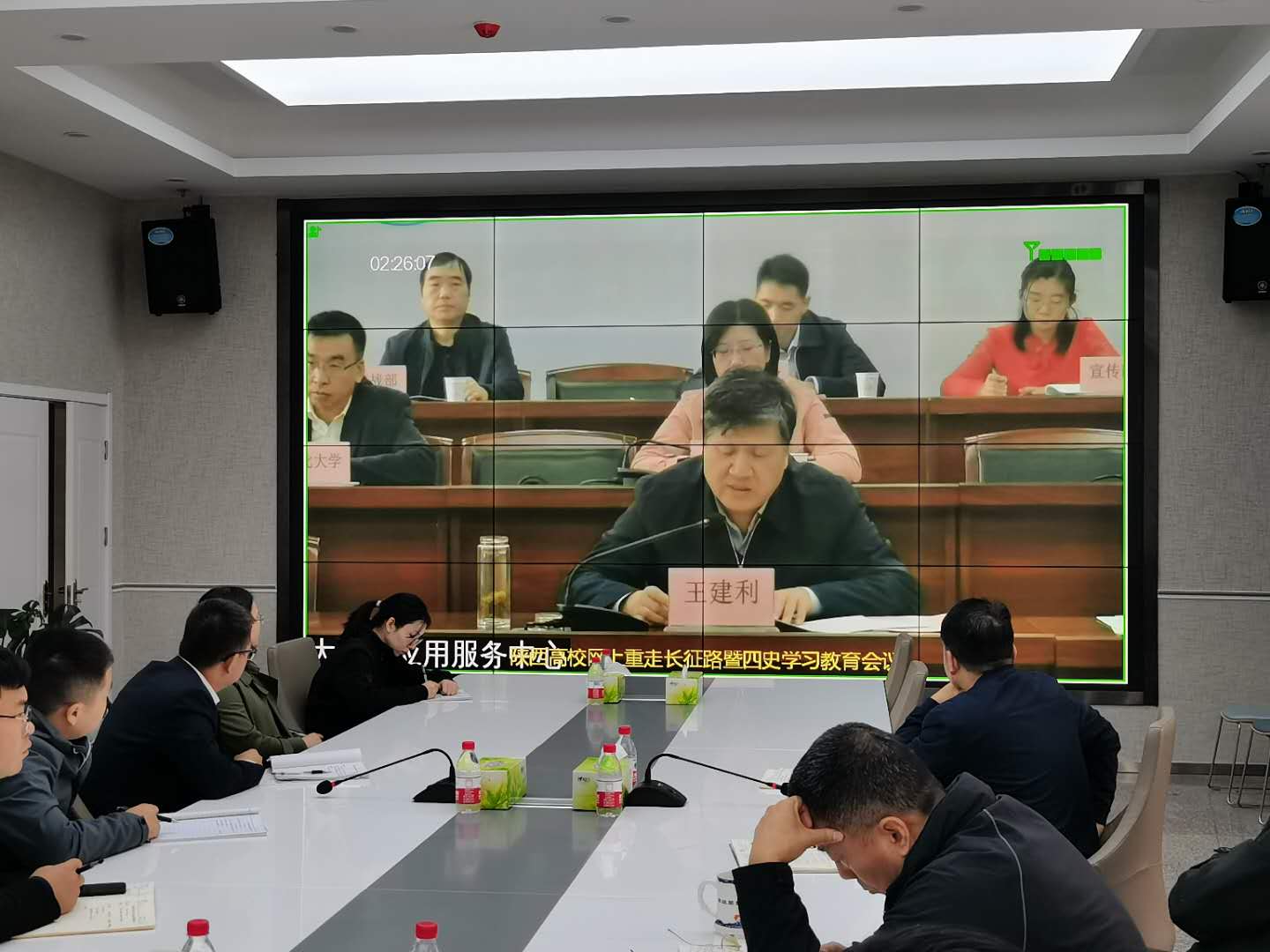 陕服新闻网讯(记者李文斌)10月23日上午,我校在国学院一楼会议室参加陕西省委教育工委、省教育厅召开的陕西高校“网上重走长征路”暨推动“四史”学习教育视频会议。我校党委书记温锋教授、副校长李宗领教授出席会议,党委职能部门负责人、机关党总支负责人、基层党总支负责人、马院教师参加会议。