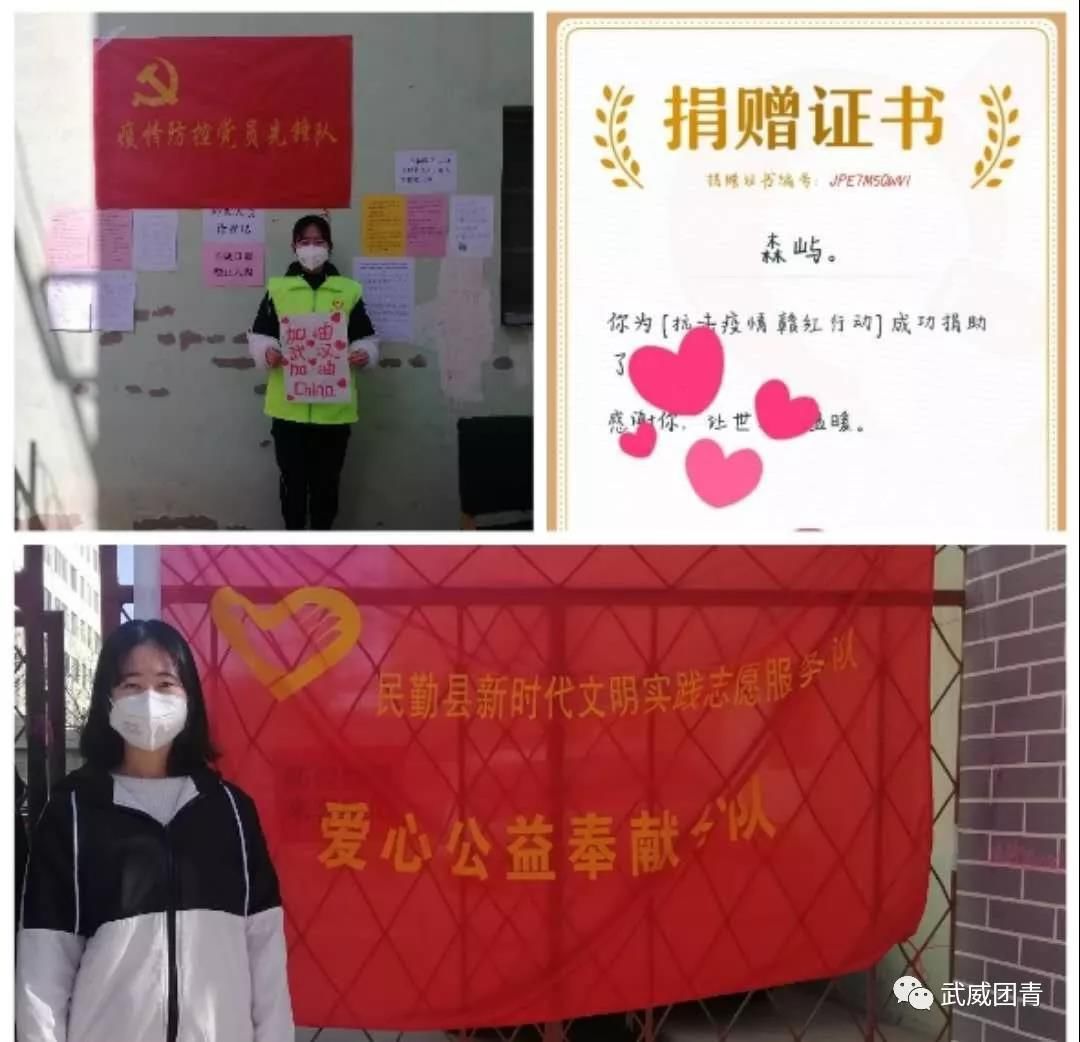 黄佳妮同学是甘肃省武威市民勤县西街社区防控点志愿值勤员。每天值班监督、登记每一个进出小区的人员信息。她由于工作认真,成绩突出,被武威共青团微信公众号报道表扬。