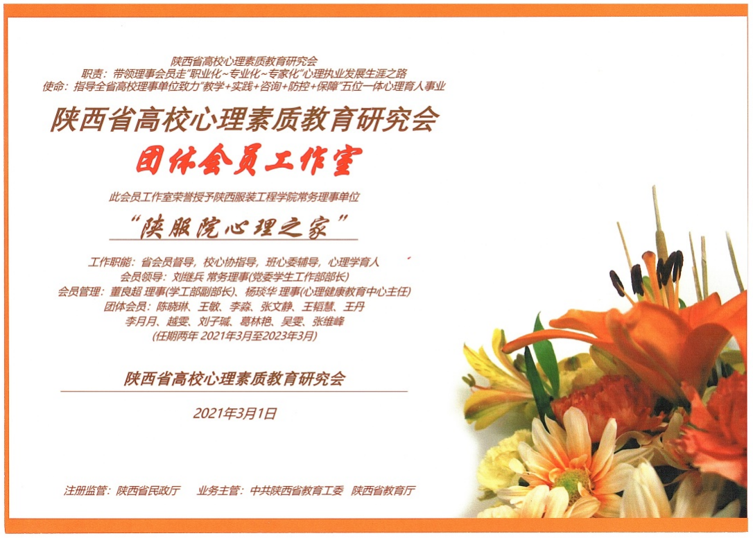 我校成为陕西省高校心理素质教育研究会常务理事单位,这是心理健康教育工作的一个里程碑,预示着心理健康教育工作走向一个新的发展阶段,我校将在省委教育工委和省教育厅的领导下,在陕西省高校心理素质教育研究会的带领和指导下,以此为契机,凝聚育心力量,持续构建“教育教学、实践活动、咨询服务、危机干预、平台保障”“五位一体”的心理健康教育工作格局,带领心理工作者走职业化-专业化-专家化的发展道路,提炼心理经验,打造育心品牌,砥砺前行,不断提升陕服心理育人质量。