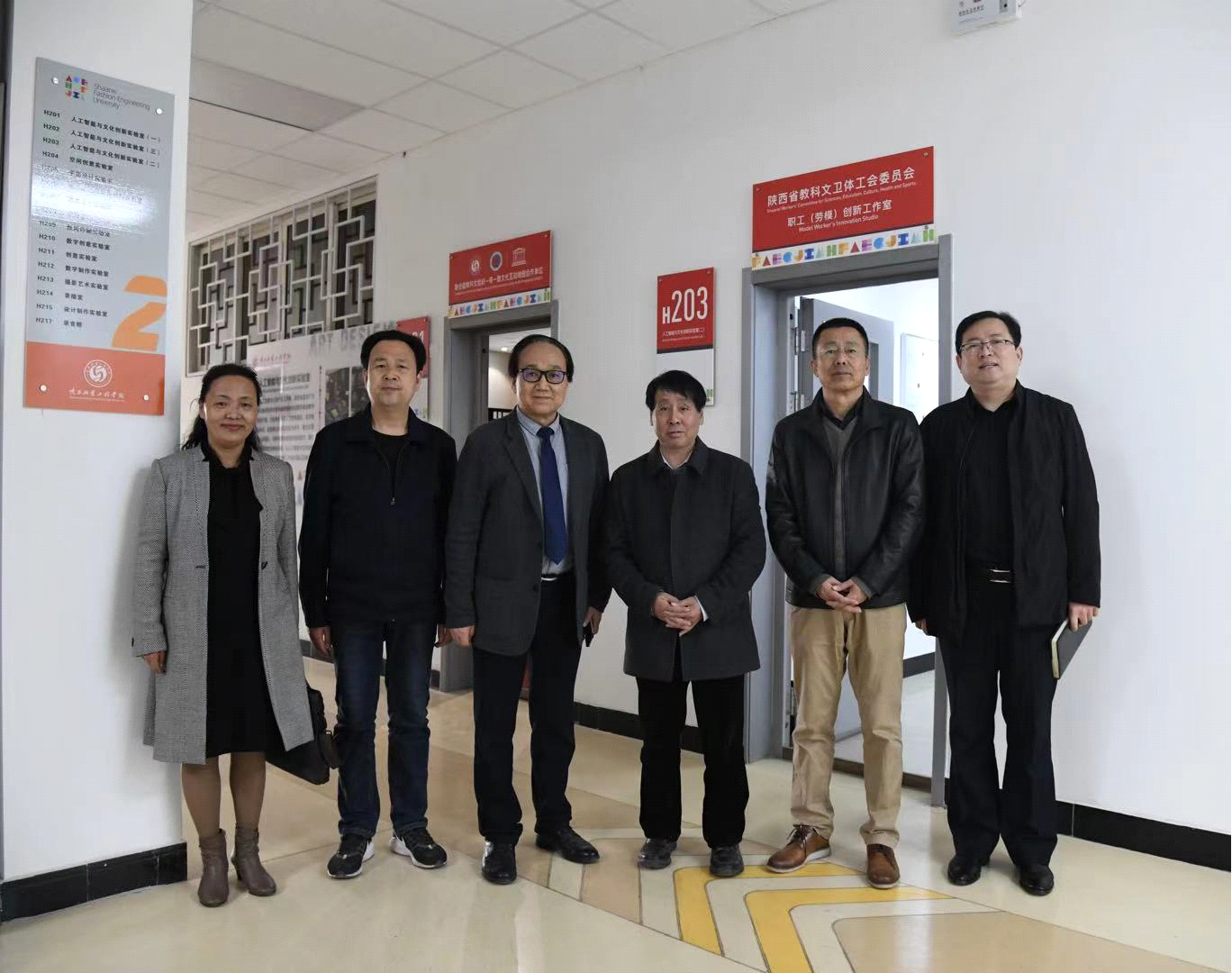 郑会长随后参观了我校人工智能与文化创新实验室。英国爱丁堡大学人工智能系博士(1988年)、英国剑桥大学博士后、原香港理工大学设计学院副院长、我校副校长唐明晰教授热情地介绍了以“联合国科教文组织一带一路文化互动地图合作单位”、“陕西省科教文卫体工会委员会职工(劳模)创新工作室”、“人工智能与产品创新联合开发中心”三位一体的新型人工智能与文化创新实验室,展现了我校的将传统与现代完美结合的创新办学模式和国际化视野、特色化发展的理念。