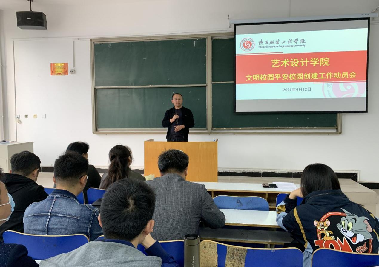 陕服新闻网讯(闫江婷)根据学校创建文明校园和平安校园工作统一部署,艺术设计学院于4月13日16:00,在F316教室召开文明校园平安校园创建工作动员会议,全体教师和学生代表参加了动员会。我院党总支书记、副院长时晓楠,副院长任晓丽出席了会议。办公室主任野苏民主持会议。