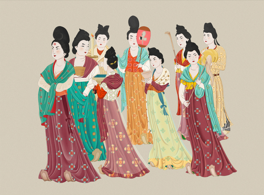 再现了陕西乾陵永泰公主墓经典壁画九宫女图
