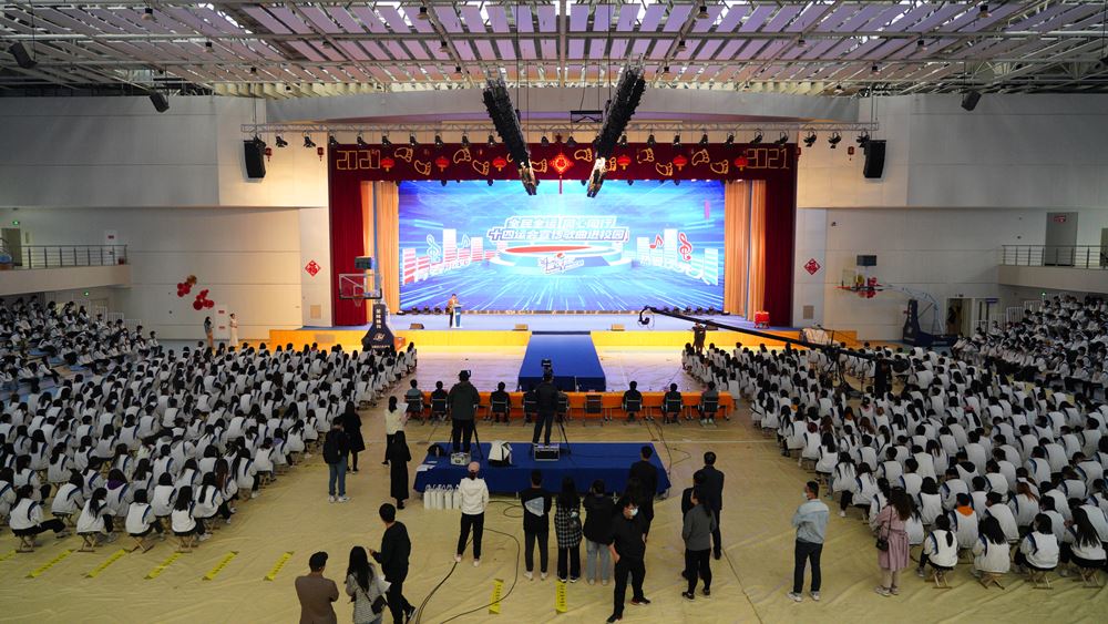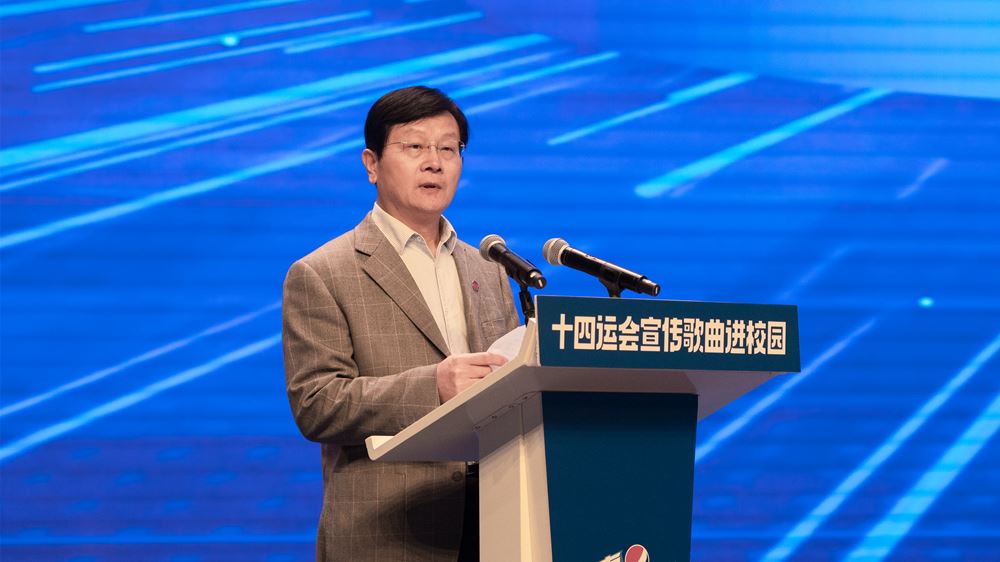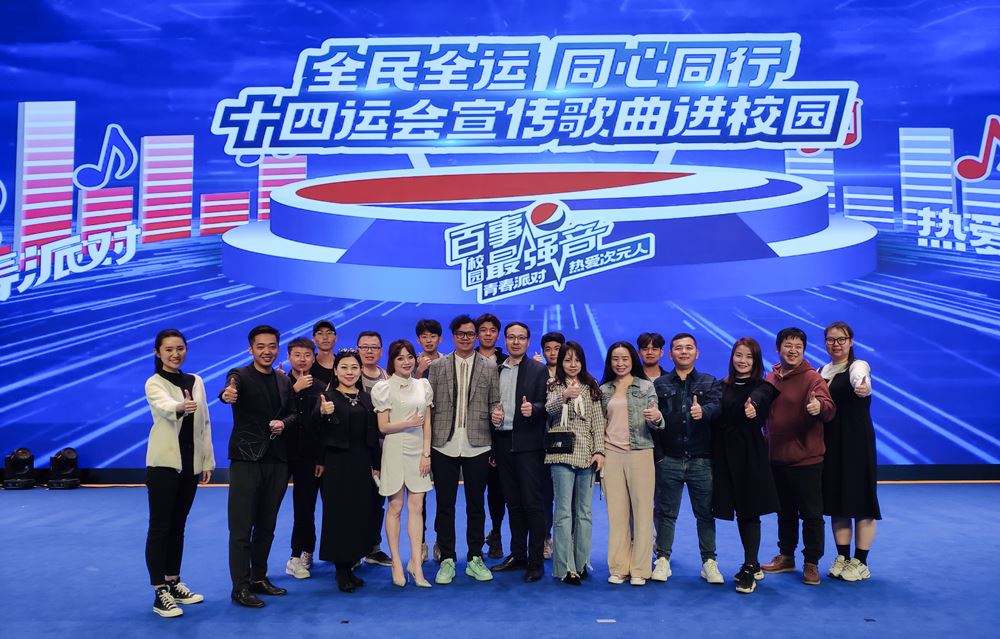 常务副校长李望国讲话指出:体育是社会发展和人类进步的重要标志,国家第十四届运动会和残特奥会,首次实现了同年同地在古城西安举办,这是我们陕西的一大幸事,“两个运动会一起筹办,两个运动会一样精彩”也成为陕西人民最温暖的承诺。作为宣传推广十四运会和残特奥会的基本内容载体之一,14首彰显中国精神的优秀歌曲被确定为十四运会和残特奥会宣传歌曲。这些歌曲体现奥运精神、充满艺术魅力、饱含体育元素、体现陕西文化、具备了广泛传唱和社会传播的基础。 “十四运宣传歌曲进校园”活动是十四运氛围营造的重要活动之一,由陕西广电融媒体集团和陕西服装工程学院共同举办的“十四运宣传歌曲进校园”的首场活动意义重大。陕西服装工程学院创建于1994年,是经教育部批准设立具有学士学位授予权的普通本科院校。学校形成了以工学类专业、艺术类专业为主体,以管理类专业和教育类专业为两翼,以服装类专业为特色,工、艺、管、经、教多科类专业协调发展的学科专业体系。学校以立德树人为宗旨,秉持国际化视野、特色化发展的理念,以育人为中心,以培养综合素质高、专业基础好、实践能力强、具有创新精神和能力的高级应用型人才为根本任务,走产教深度融合之路,教育质量不断提升,历年来就业率高,毕业生受到用人单位普遍好评。陕西服装工程学院全体师生大力支持、踊跃传唱十四运会宣传歌曲,通过我们的活动,让十四运会和残特奥会的“好声音”形成感召力量,向海内外展示一届独具特色、与众不同、魅力无限的体育盛会,呈现一场真正让全世界听得见的体育盛会,让盛世盛会留存浓郁的秦风秦韵,为时代精神发声,与健康中国共鸣。