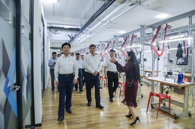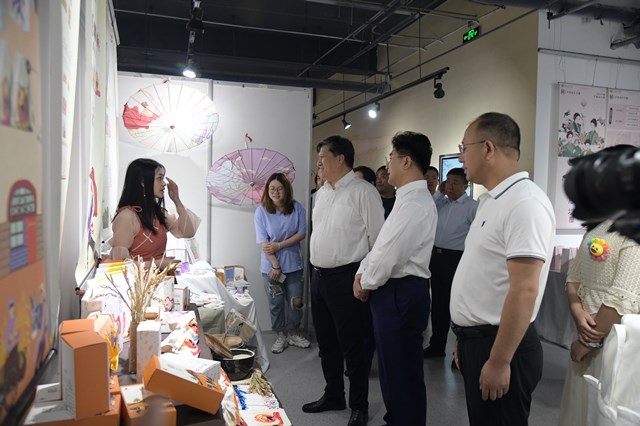 王建利书记来到我校双创中心智慧工场,考察了我校先进的智慧化服装生产线,了解了我校学生创客项目孵化情况,指示学校一定要做好产教融合,重视学生创新创业指导工作,着力提高项目孵化成功率。