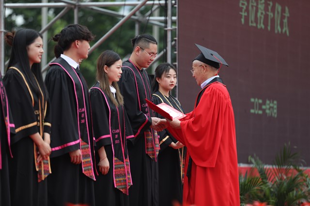 在授学位仪式上,副校长吴俊林教授宣读了本科学生学位授予决定,董事长吕明博士为省级优秀本科毕业生代表颁发学位证书,学位委员会成员及校领导为本科毕业生代表颁发学位证书。