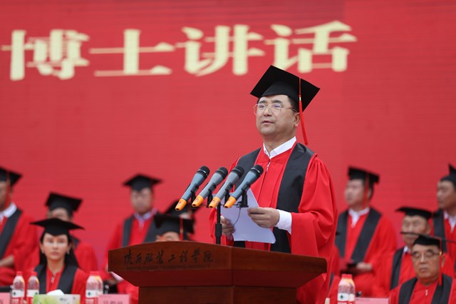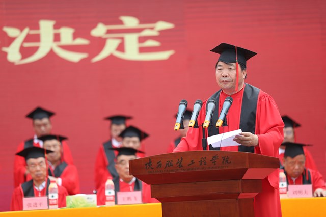 陕服新闻网讯 6月26日上午,我校在喷泉音乐广场举行2021届学生毕业典礼暨学位授予仪式。常务副校长李望国教授主持典礼暨学位授予仪式。董事长吕明博士、校长张义明教授、嘉宾代表陕西科技大学院原党委书记潘中伟教授讲话。教师代表马克思主义学院院长颜毓洁教授、毕业生代表孟庆涵同学、毕业生家长代表张阳进先生发言。陕西省政协原副主席张生朝,陕西省政府原秘书长薛汉军教授等来自全国各地、长期关心支持帮助我校发展的原省政府领导、省内高校原校领导、我校老领导老同志、行业协会、研究院、合作企业高管、中小学校校长、社会各界著名人士、毕业生家长代表、杰出校友代表、新闻媒体单位代表等出席。校董事长吕明博士、副董事长吕超先生、校长张义明教授、党委书记督导专员温锋教授、副校长吴俊林教授、李宗领教授及校学位委员会全体成员主席台就座。