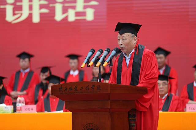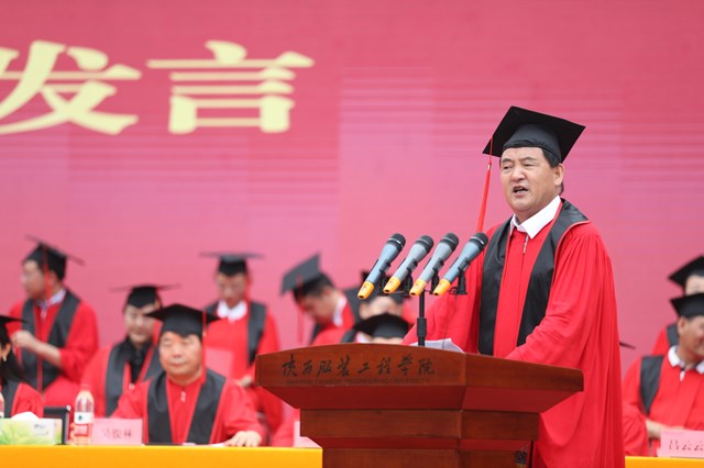 来宾代表陕西科技大学原党委书记潘中伟教授讲话表示:作为教育战线上一名师长,我希望同学们时刻牢记习近平总书记对当代大学生的希望,树立远大理想、热爱伟大祖国、担当时代责任、勇于砥砺奋斗,在各个岗位上为实现“两个一百年”奋斗目标、实现中华民族伟大复兴的中国梦做出自己应有的贡献。祝愿陕西服装工程学院领导班子和师生员工在吕明董事长的带领下,不忘教育报国初心,努力建设幸福大学,为陕西省乃至全国民办教育事业高质量发展做出更大的贡献!