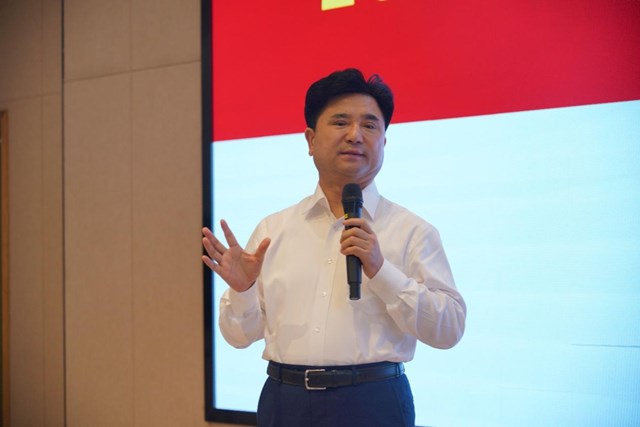 董事长吕明博士讲话,他首先代表学校对新教师的到来表示热烈的欢迎,随后从学校的历史出发、定位与发展规划、人才培养与队伍建设以及立德树人几个方面向新教职工介绍了学校基本情况,并对我校构建无边界幸福大学做出展望。最后他对新教师提出三点要求,希望新教师遵守职业操守,立德树人;教学与科研并重,注重人才培养,理清科研思路,实现教学水平与科研能力的协同发展;转变角色,立足本职,与学校一起成就自我,共创辉煌。