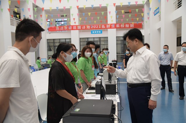他要求各迎新单位通力协作,为2021级新生提供周到细致的服务,尽全力解决新生和家长的困惑,营造温馨、和谐的迎新环境,确保迎新工作顺利完成。