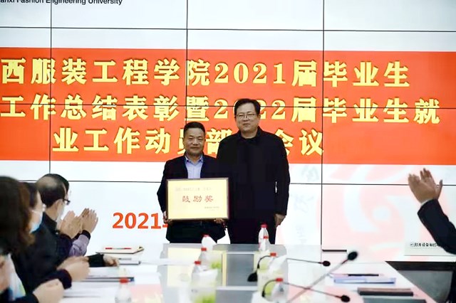 校长姜寿山、校长助理刘继兵、薛丽萍、邵智勇给教育学院、艺术设计学院、经济管理学院等2021年毕业生就业工作先进集体;李淼、野苏民、任涛涛等13名2021年毕业生就业工作先进个人颁发奖状和奖金。