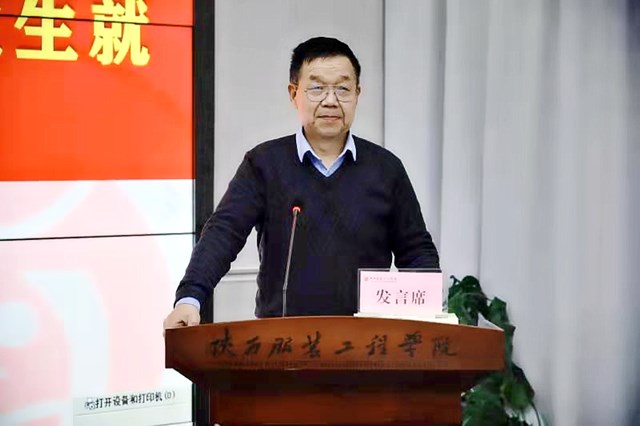 校长姜寿山讲话肯定各位领导和老师在2021年毕业生就业工作中做出的成绩,感谢大家的辛勤付出。姜校长强调,没有就业就没有招生,只有做好就业工作,实现充分、高质量就业,才能为招生工作创造良好氛围,实现高质量招生。要围绕就业、招生做好专业设置、课程改革、教育教学改革,服务国家社会经济发展大局,服务地方经济,办出教育特色,紧跟时代发展需要,继续深入推进就业、招生、教学改革,探索招生、培养、就业一体化教育模式,继续加强招生、就业工作力度,全面推进学校的高质量发展,突出重围,再造陕服新辉煌。