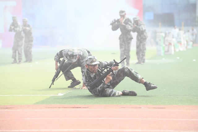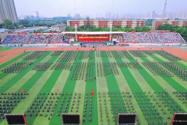 会上,2023级新生进行了精彩的军训汇报表演,赢得了在场师生经久不息的掌声。