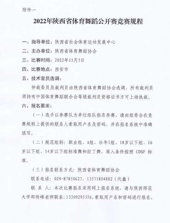 附件:2022年陕西省体育舞蹈公开赛竞赛规程