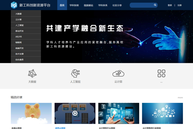 平台概述:《新工科创新资源平台》从社会热门产业的就业前景、人才需求等方面设计,提供相关学科解释、体系路径、就业方向、企业应用技术、综合素质培养以及技术交流等内容,打造以就业为导向,包括“前沿技术+文化素质+专业基础+专业核心+专业拓展+综合能力培养”的知识资源服务。