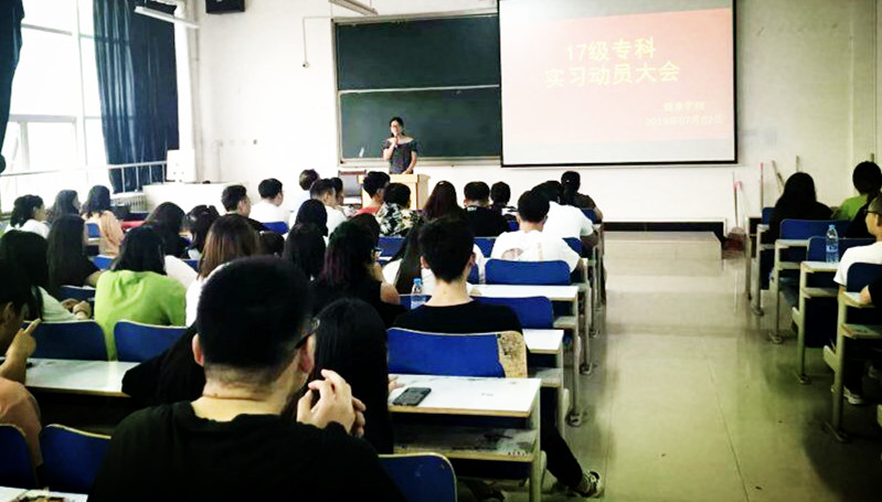 会议由学院主管教学的赫光中院长主持,大会共分为三项议程。首先,由学院分管学生实习工作的实验中心主任王孟老师对学生实习工作做了详细安排。并就实习大纲上的一些具体要求做了详细的讲解,要求同学们在实习期间一定要及时填写实习报告,不得随意请假,要保质保量地完成实习任务。其次,主管学生工作的罗杜娟副院长重点讲了实习纪律要求和安全注意事项,要求每个实习生都要端正实习态度,严格遵守学校和实习单位有关规章制度;要牢记“安全第一”,切实注意人身安全、财产安全及饮食安全;在心态和角色方面尽快作出调整,发扬不怕苦、不怕累的精神,理论联系实际,圆满地完成实习任务。最后,分管教学的赫光中院长作了会议总结。赫院长指出学院历年来重视学生实习实训工作,今年更是加强了对实习单位的开辟工作。开辟的目的就是为了让每个学生通过实习达到理论与实践结合,护理专业的学生更要为迎接2020年全国护士执业资格考试打下夯实的临床基础。赫院长强调每个实习生必须牢记自己的双重身份,在实习期间要以学习为重,积极进取,严格遵守实习单位的相关要求,增强集体荣誉感,为顺利完成实习任务和毕业就业打好基础。