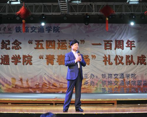 随后吕明董事长讲话:“一是鼓励同学们奋发有为,成为时代的优秀青年;二是要求同学们通过创造性学习赢得时代赋予我们的能力、能量和才能。”董事长表示铁路学院是我校近年来发展比较快的二级学院,高铁走向世界,高铁引领未来,铁路学院的学生选择的专业是时代赋予的新机会。希望同学们成为二级学院问题的解决者,成为学校建设的推动者。