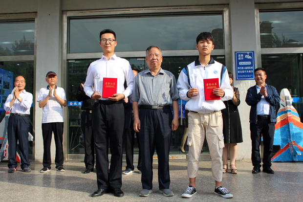 高职学院副院长常理群为获得最佳组织奖的班级颁奖并合影