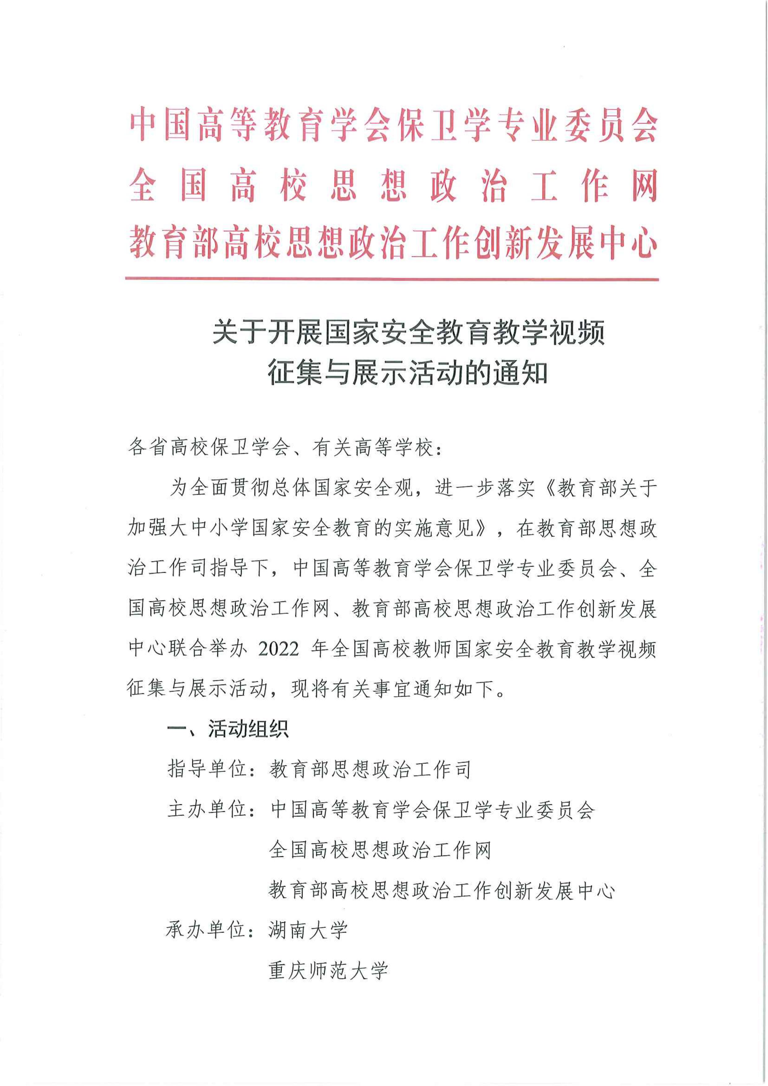 关于开展国家安全教育教学视频征集与展示活动的通知