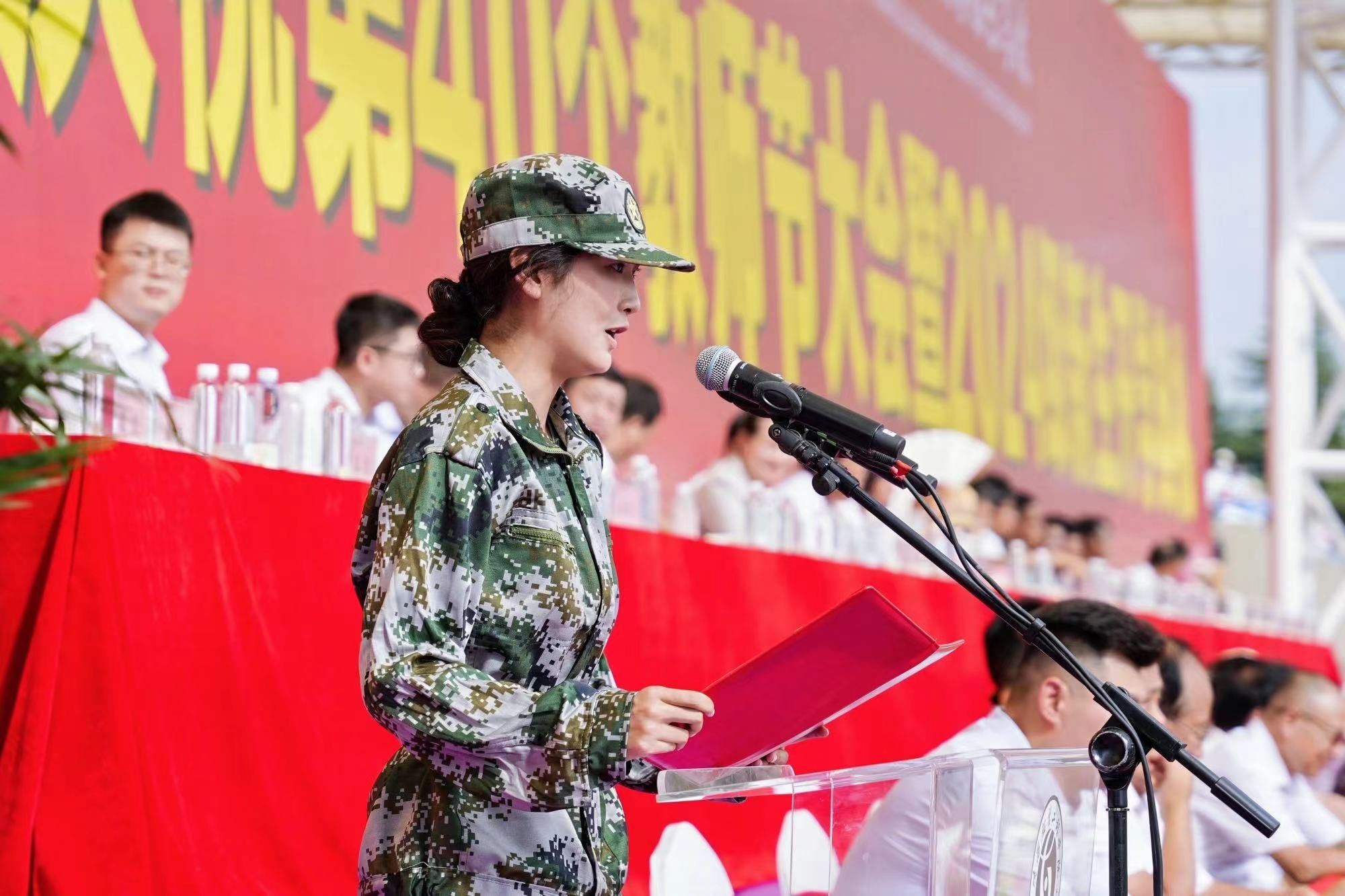 陕西服装工程学院校长姜寿山致辞。他代表陕西服装工程学院全体师生员工向关心支持学校发展的领导、嘉宾表示热烈的欢迎和衷心的感谢,向承担本次国防教育的官兵表示崇高的敬意,向全体教师表示节日的问候,向圆满完成国防教育教学任务的新生表示诚挚的祝贺!他高度评价学校30年发展建设成就,肯定学校目前因“专业特色鲜明、学校管理规范、硬件环境优美、培养质量过硬而深受社会各界欢迎”而发展良好。他充分肯定国防教育、入学教育取得的良好成绩。他希望全体陕服师生传承、发扬好陕服精神,用习近平新时代中国特色社会主义思想武装头脑,教职员工要将自己的工作和立德树人紧密结合,学生要将自己的专业学习和思想品德养成紧密结合。希望每个陕服人都能够尽职尽责,为学校的发展做出自己的努力和贡献。希望每个陕服人都能够永葆青春,永葆活力,生命不息,奋斗不止。