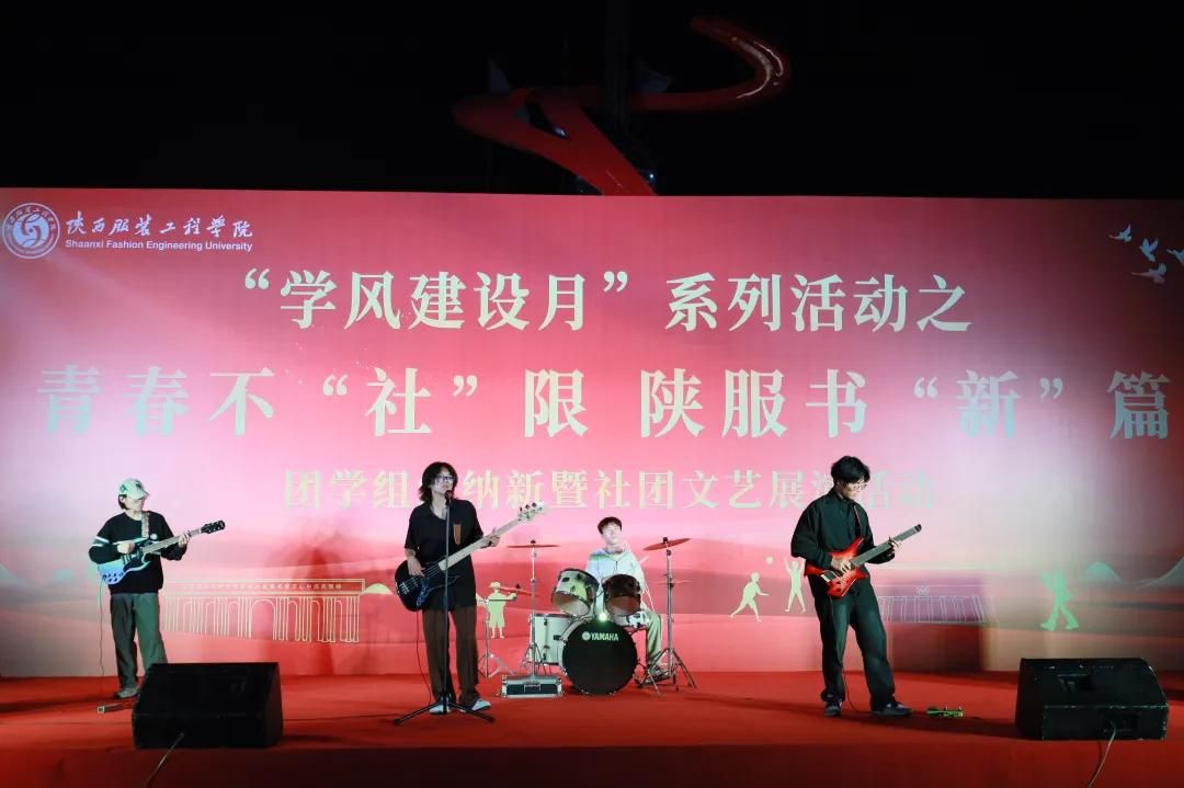 陕服新闻网讯(贾永旺)为进一步推进校园文化活动的蓬勃发展,提高学生社团专业化发展水平和品牌化影响效应,为新同学提供展示自我风采的平台和互相交流的机会,引领带动广大同学锻炼本领、提高素养,实现德智体美劳全面发展,我校于 10 月 15 日在喷泉广场举办“学风建设月”系列活动之“青春不‘社’限,陕服书‘新’篇”团学组织纳新暨社团文艺展演活动。