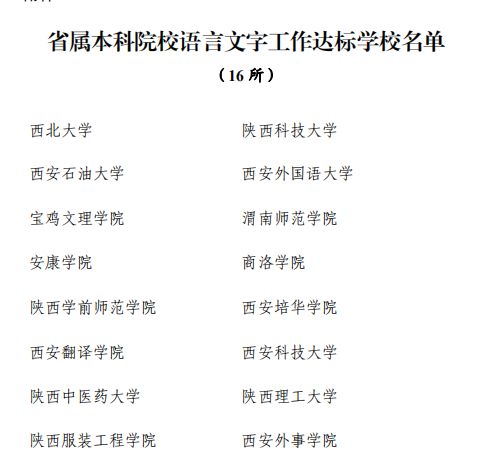 陕服新闻网讯(韩涛)近日,陕西省教育厅公布了省属本科高校语言文字工作达标验收情况,我校被省教育厅认定为陕西省语言文字规范化达标院校。