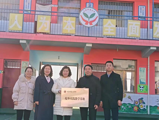 陕服新闻网讯(教育学院 杨佩璋)12月5日上午,为了解我校学生的实习情况,关心实习生的成长和发展,副校长吴俊林、教务处副处长杨红强、教育学院执行院长拓梅梅、教育学院实验室主任王冰一行,赴大杨新苗小学及新荷幼儿园考察慰问,并与对方建立长期友好合作关系,与大杨新苗小学举行签约授牌仪式。实习基地负责人陪同参观并介绍了实习基地的基本情况、实习生的工作生活状况以及实习成果等。