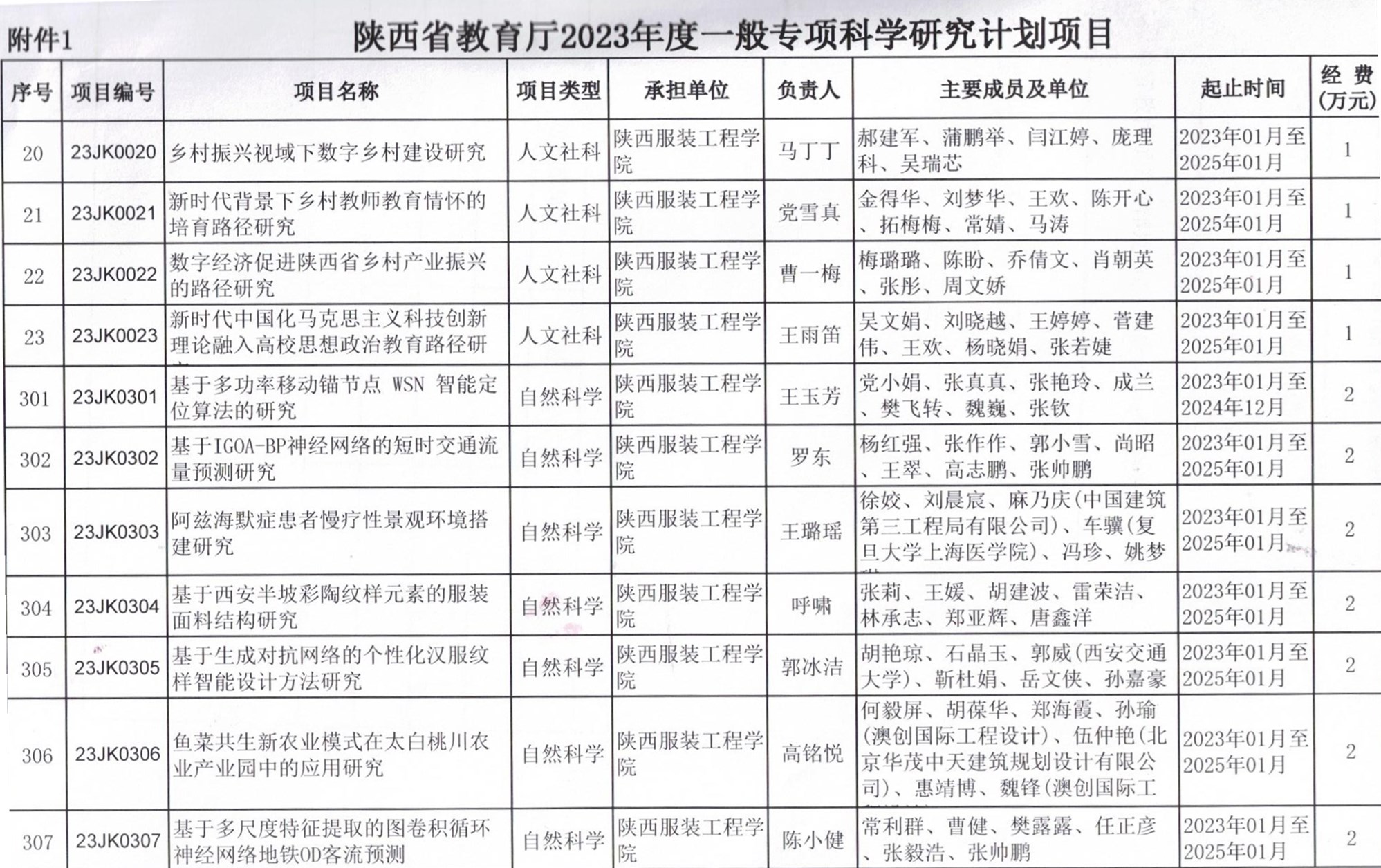 陕服新闻网讯(郝建军)近日,陕西省教育厅下发《陕西省教育厅关于印发2023年度科学研究计划项目的通知》(陕教函【2023】1170号),我校申报的11项专项科研项目全部获批立项。