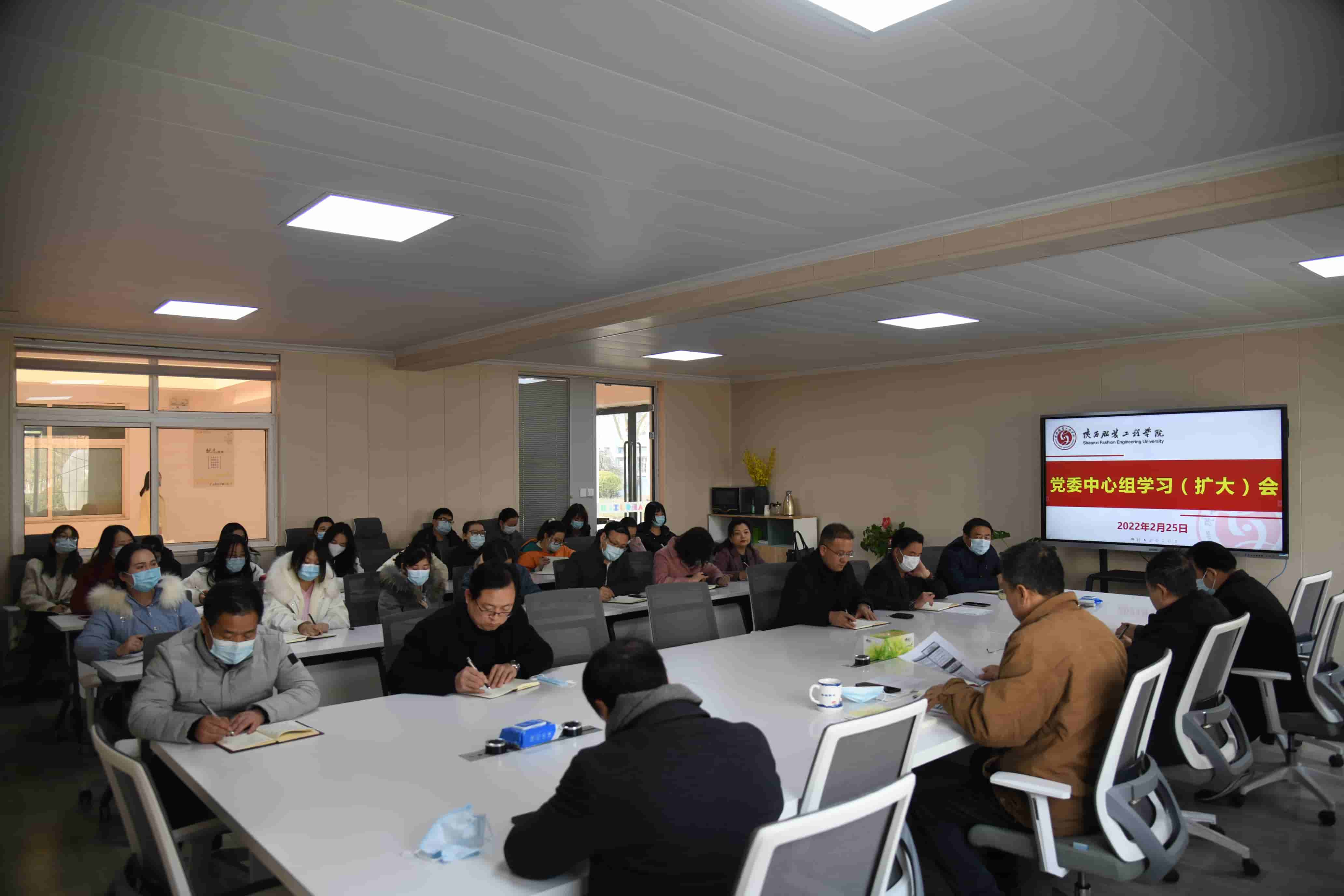 陕服新闻网讯(李文斌)2月25日下午,我校在行政中心第三会议室召开了党委中心组学习(扩大)会。会议结合党史学习教育专题民主生活会和基层党组织组织生活会相关要求,重点围绕党史学习教育专题民主生活会重点学习内容进行学习研讨和交流。党委书记温锋主持会议,校党政领导班子成员、党委工作部门负责人、马克思主义学院院长、校团委书记、各党总支(直属党支部)书记、全体思政课教师参加了会议。