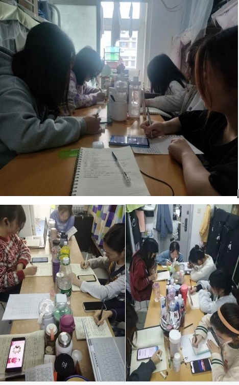 英语老师给学生起到了垂范作用,学生在宿舍里也认真学习和练习,没有因为疫情而影响学习。对老师布置的课后作业,自主学习之外,能和舍友一起讨论,作业书写工整。除了上课期间的课堂笔记外,学生还能进行深度学习和探究式学习,对一些问题有思考,有总结。大学英语课程承载着课程思政教育的重大责任,在教学中,老师任然对学生进行价值观的引导。以西安疫情为主题,布置相应的作业。我校学生根据专业特点,个人特长,以各种作业形式为西安加油。