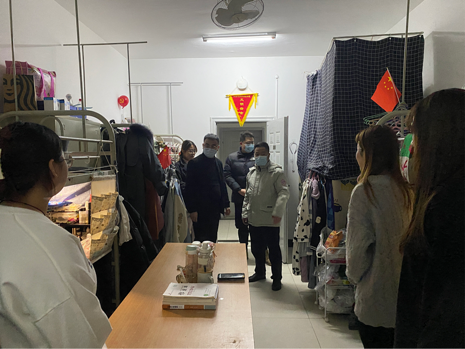 陕服新闻网讯(交通学院)近期,全国疫情发展形势严峻复杂,而西安疫情正处于关键时刻,部分区域实行管控和封控。封闭管理下的同学们也忧心焦虑于疫情的每日发展,为及时了解同学们的思想动态及学习生活情况,引导和教育学生严格遵守各项疫情防控规定,理性看待特殊时期学校的管理制度,合理安排好自身的学习和生活,12月25日,我校交通学院党支部书记、副院长常利群、院长助理葛成、团总支书记郭凡凡老师走访学生宿舍,将学校的关心与爱护送到同学们的心坎上,切实关心学生身体健康状况,将学校疫情防控政策落到实处。
