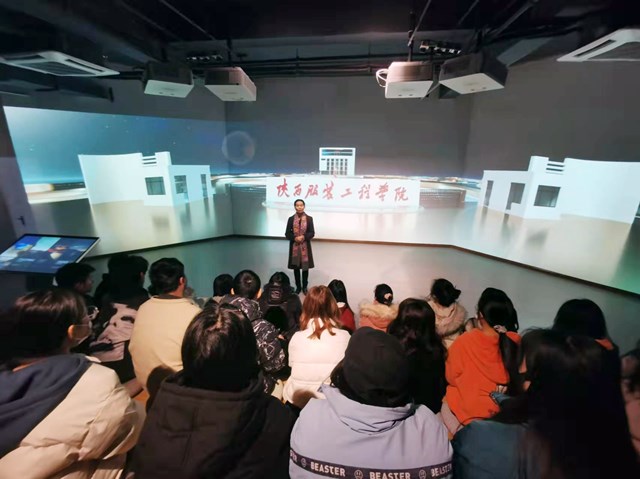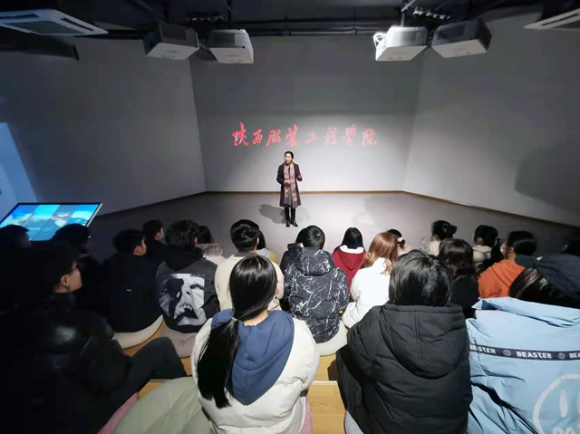 最后,我校中国传统文化研究中心主任胡鸣焕教授向同学们概括介绍了数字艺术馆的设计理念、展陈模式、展示内容、多媒体信息技术应用等内容。胡教授在授课中说:“深化课程改革,创新育人模式,全面提升育人质量,推动学校内涵建设,构建新时代无边界幸福大学,陕服一直在路上。”