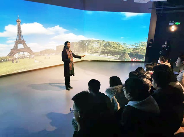 陕服新闻网讯(中国传统文化研究中心) 为培养学生创新创业和实践能力,促进教学质量和专业内涵建设,由我校中国传统文化研究中心主任胡鸣焕教授等老师与艺术设计学院专业课教师代小丹老师共同讲授的视觉传达专业《展示与陈列设计》教学实践课在季羡林国学院数字艺术馆内进行,我校艺术设计学院视觉传达设计专业1901班、1902班,近百名同学参加了此次联合教学活动。