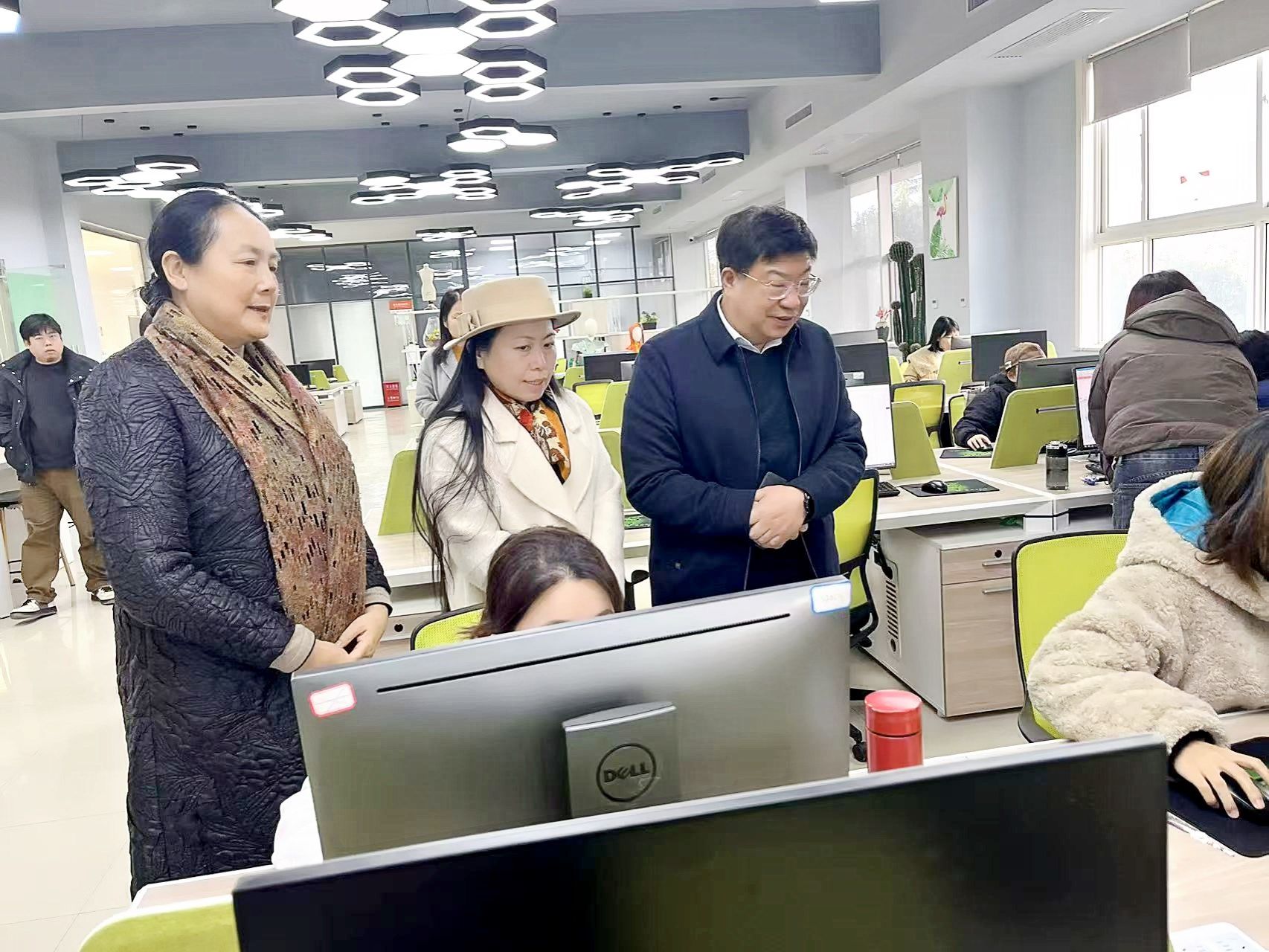 王岗一行还走访了服装学院实验教学中心,详细了解实验设备的配置和使用情况、安全管理和实训教学的开展情况。