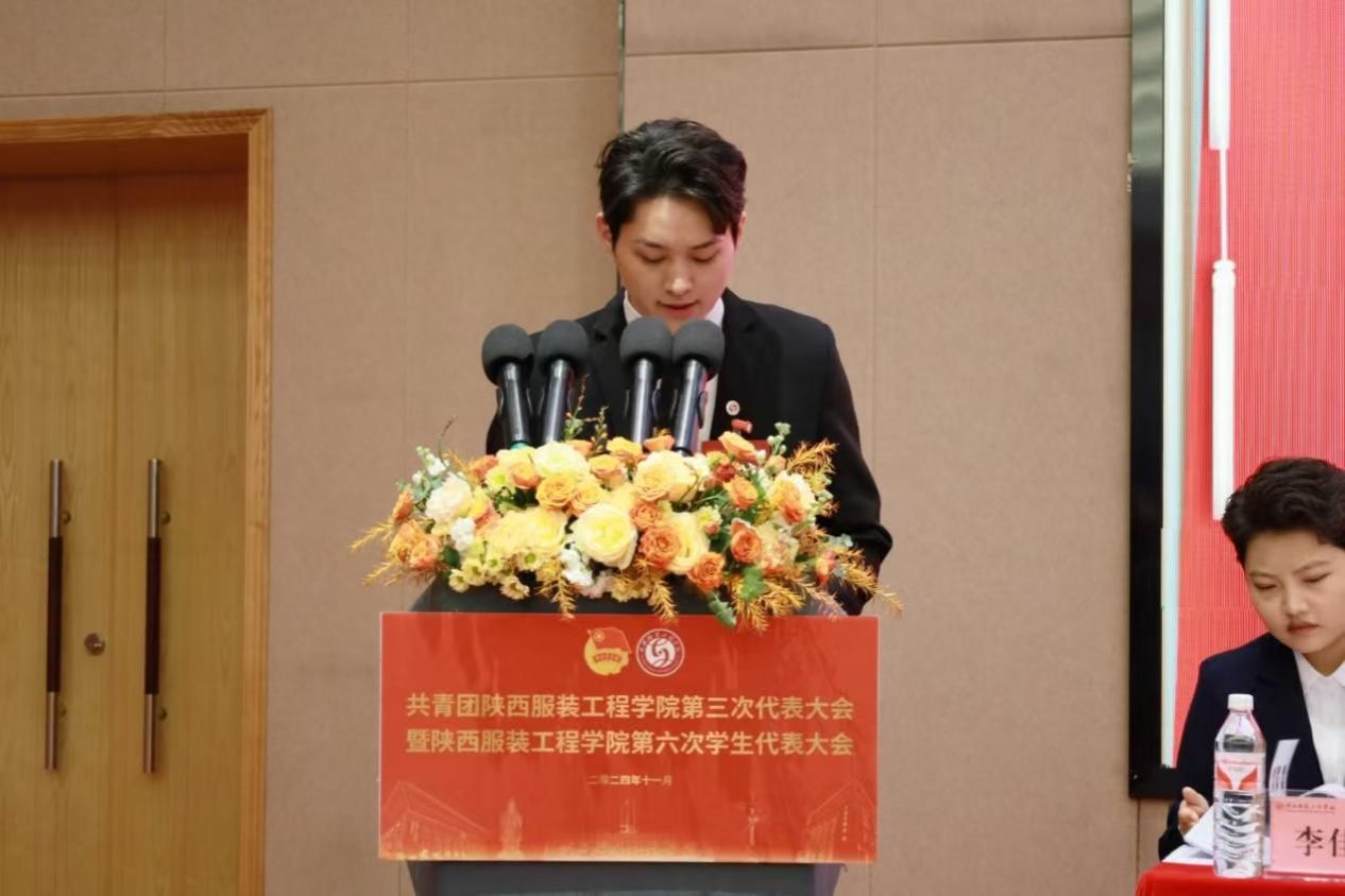 陕服新闻网讯(郭凡凡)凝聚青春心向党,挺膺担当勇争先。11月29日至30日,共青团陕西服装工程学院第三次代表大会暨陕西服装工程学院第六次学生代表大会在E104报告厅召开。全校107名团代表和161名学代表共聚一堂,共商学校团学组织发展大计。校党委书记王岗,团省委副书记刘洋出席开幕式并讲话。校长姜寿山、团咸阳市委书记高俊、西咸新区团委副书记刘景、副校长潘庆才、党委副书记、纪委书记刘继兵、陕西理工大学团委书记王甫明、陕西省学联驻会执行主席张帅、学校各职能部门负责人、二级学院院长、党委(党总支)书记、副书记等出席了大会开幕会,大会秘书长董良超主持开幕会。
