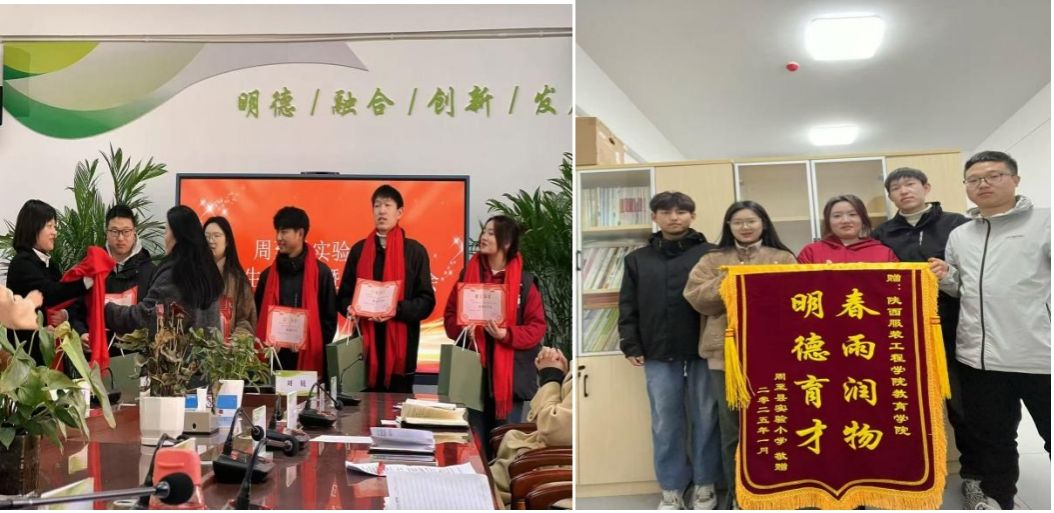 实习结束时,周至县实验小学校长刘锐亲自为实习生们颁发荣誉证书和奖品,对他们的表现给予了充分肯定和高度评价,称赞他们为学校教育教学工作增添了新活力与生机。随后,实验小学向我校教育学院赠送了“春雨润物,明德育才”的锦旗,而实习生们也怀着无比诚挚的心情,对在实习过程中给予他们诸多关怀与帮助的班主任老师们表达了由衷的感谢之意。