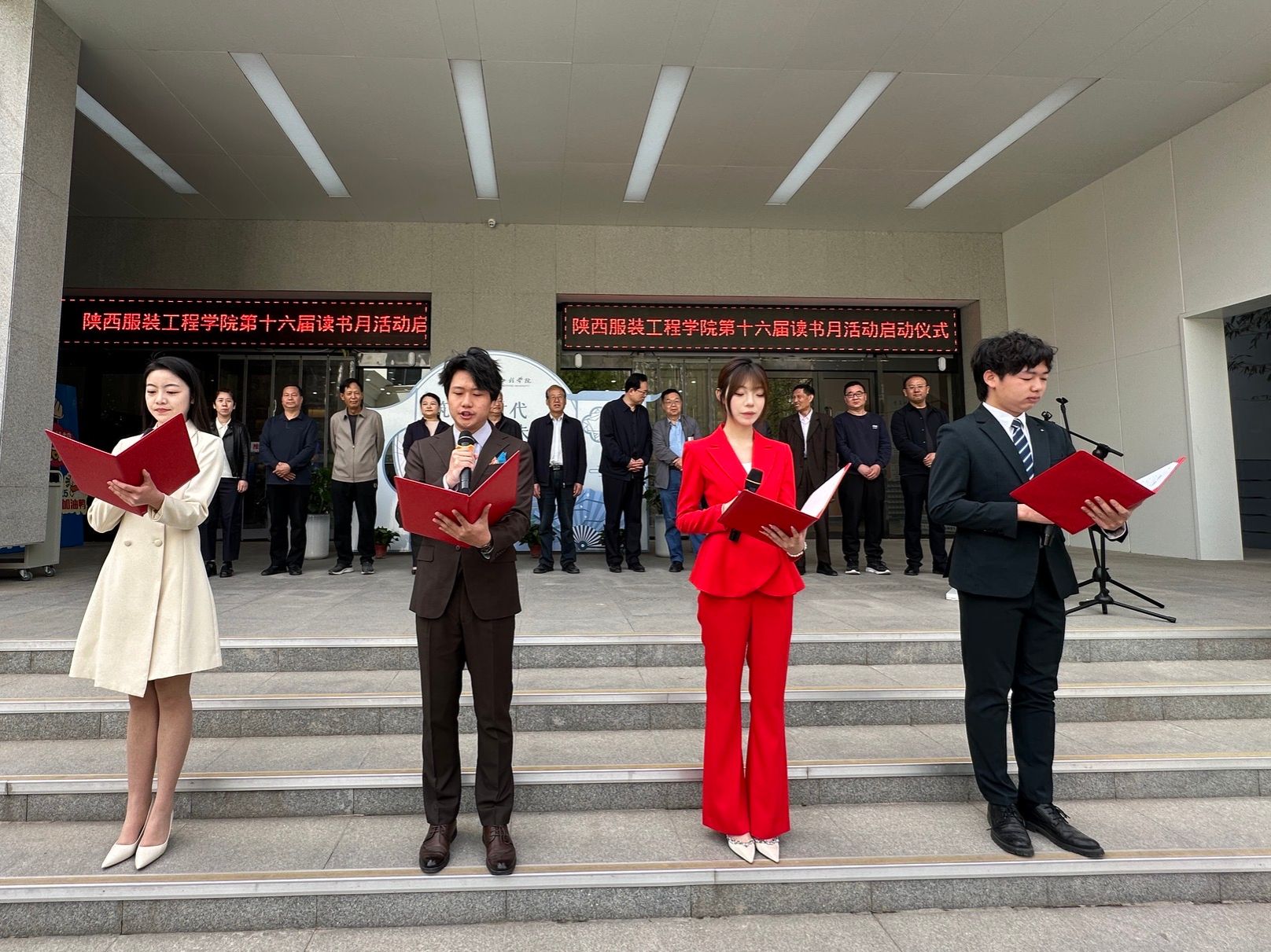 陕服新闻网讯(高燕霞)在第30个世界读书日到来之际,为丰富校园文化生活,构建书香校园,4月9日上午,图书馆启动以“ 阅读启智梦想,AI引领未来”为主题的陕西服装工程学院第十六届读书月活动。校长姜寿山、常务副校长黄新民、副校长潘庆才、党委副书记刘继兵、校长助理罗文谦等校领导和师生代表300余人共同参加了此次活动。活动由图书馆副馆长蒲伟华主持。