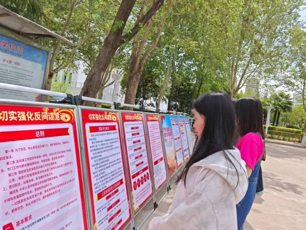四、举办展览,扩大宣传影响。4月15日,在学校阳光广场举办了“全民国家安全教育,走深走实十周年”主题系列展览。通过电子屏和19块展板,系统解读了习近平总书记总体国家安全观重要论述、国家安全16个领域,以及《国家安全法》《反分裂国家法》《反间谍法》《反恐怖主义法》《国家情报法》《网络安全法》等相关法律法规。全校8000余名师生现场观看,进一步扩大了宣传教育覆盖面。当日下午3点,学校组织学生通过直播、抖音、小红书、快手视频等平台,学习收看教育部指导推出的《千万师生同上一堂国家安全教育课》,切实增强了师生们的国家安全意识,坚定了捍卫国家安全的信念与决心。