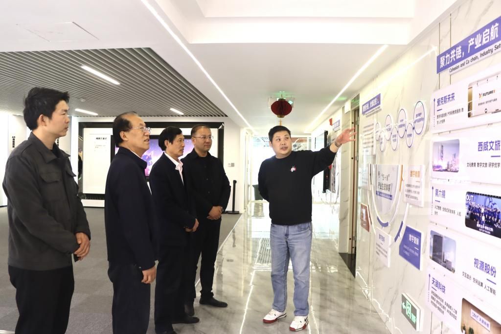 座谈会后,校领导在公司负责人的陪同下参观了实习基地和工作区域,详细了解了公司在数字内容创作、微短剧创作、影视制作、新媒体运营等方面的业务布局,检查了我校学生的实践成果。