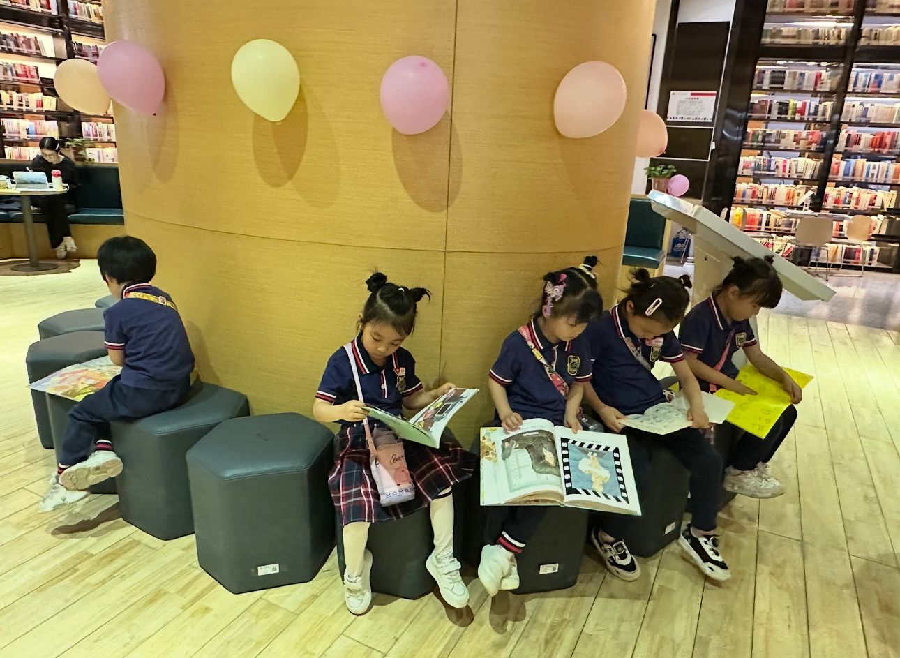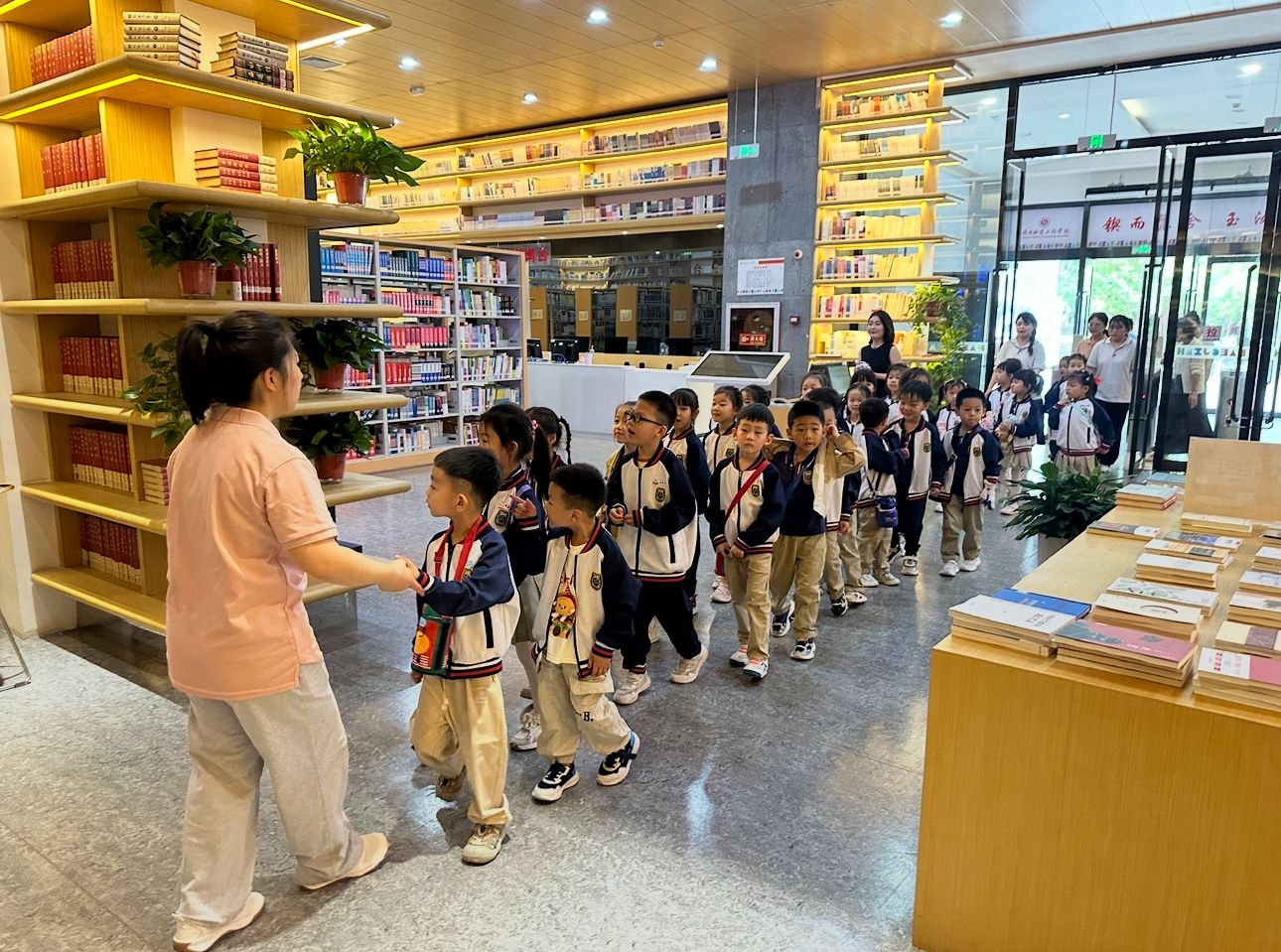 踏入图书馆,孩子们立刻被我校图书馆浓厚的文化氛围所吸引。在图书馆老师的带领下,小朋友们有序参观了图书馆的各个区域。在参观过程中,接待老师向小朋友们介绍了图书馆的空间布局、馆藏资源及开展的活动等等。