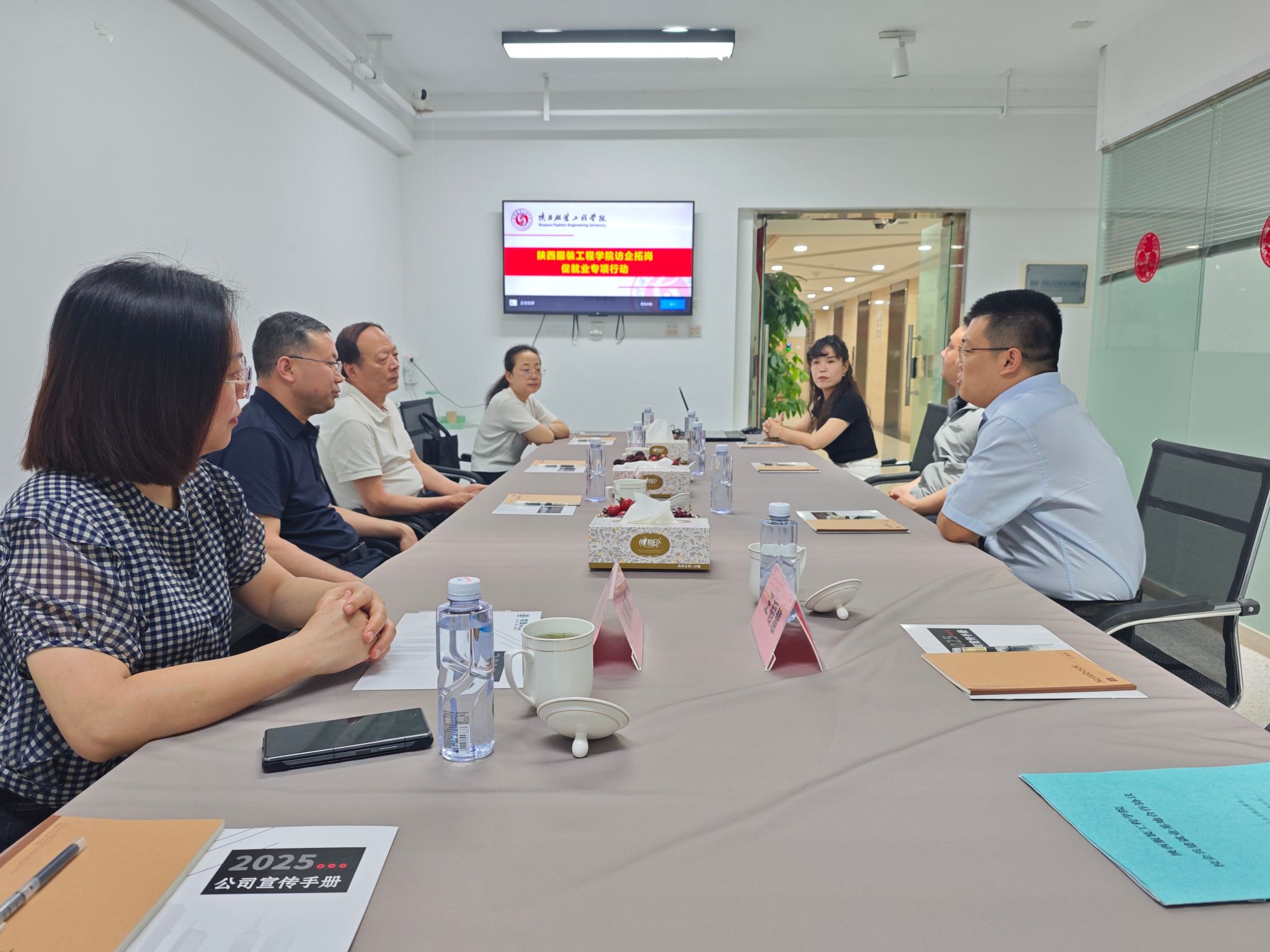 陕服新闻网讯(经济管理学院)为深化产教融合,精准对接产业发展需求,拓宽人才培养与就业渠道,6月4日,常务副校长黄新民,经济管理学院执行院长韩燕雄、副院长来燕、党委副书记王韬慧、实验室中心主任肖朝英一行,赴西安微墨网络科技集团有限公司开展访企拓岗专项行动。双方就人才培养、实习实践、毕业生就业等多领域展开深入探讨,并达成一系列富有建设性的合作共识。