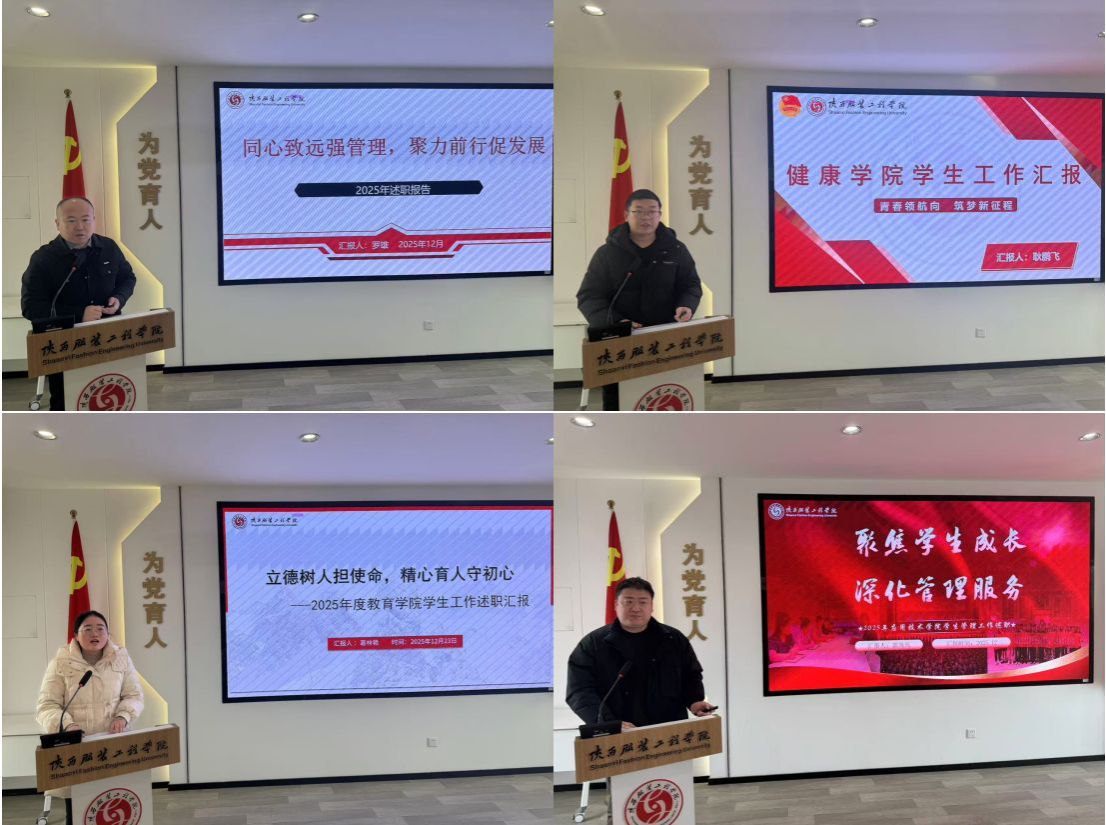 会上,七个二级学院紧扣学校“15668”学生工作体系与年度重点任务,围绕思想政治教育、学风建设、班团组织、学生服务、辅导员队伍建设及安全稳定管理等方面,依次进行现场述职,全面展示工作亮点、剖析存在问题、提出改进思路,实现了交流互鉴、共促提升的会议目标。