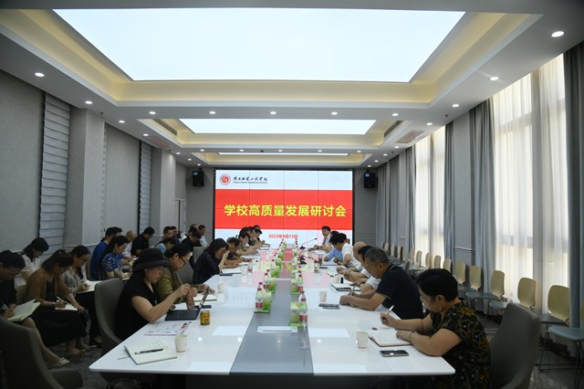 陕服新闻网讯(李文斌)9月13日下午,学校在国学院会议厅召开高质量发展研讨会,领导班子结合各自分管领域,围绕高质量发展目标,立足发展实际,进行了汇报交流,共同谋划推进学校新学年发展的思路和举措。董事长吕明博士、副董事长吕超教授、执行董事长潘中伟、常务副校长黄新民、副校长李宗领、副校长吴俊林、副校长唐明晰、总会计师王晓民、校长助理罗文谦、校长助理刘继兵、校长助理李钊、校长助理唐学学出席研讨会,全校副处级以上干部参加。吕超主持研讨会。