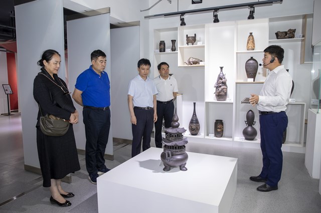 陕服新闻网讯(李文斌)6月13日下午,西北政法大学党委副书记、纪委书记肖道远、西北政法大学新闻传播学院院长孙江一行11人莅临我校考察交流。校领导陪同肖道远一行观看了学校《镐京》宣传片,参观考察了季羡林国学院、数字艺术中心、艺术学院实验室、图书馆、体育馆、现代服装产业学院等处,并在国学院一楼会议室进行了深入交流座谈。董事长吕明、副董事长吕超、副校长李宗领、服装学院院长张莉、宣传部负责人伍建成、新媒体中心负责人芮小博参加座谈会。副校长吴俊林主持座谈会。