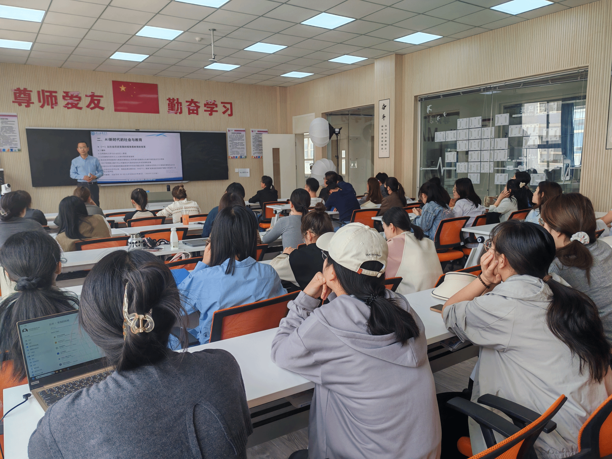 2025年4月10日下午2:30,陕西学前师范学院幼儿教育学院王瑜教授在H406报告厅作题为《AI新时代教育变革》的学术讲座,教育学院全体教师参加。